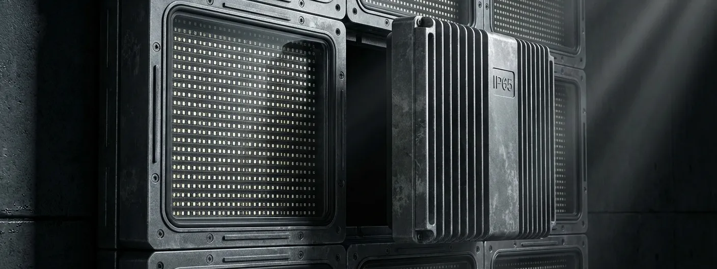 Einzelne LED Display Module für den Außenbereich. Pixelabstände von 2,8mm bis 16mm — je nach Betrachtungsabstand und Anforderung. Alle Module sind wetterfest (IP65/IP54) und für den Dauerbetrieb ausgelegt.