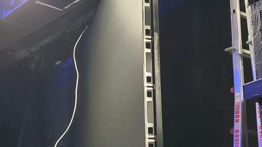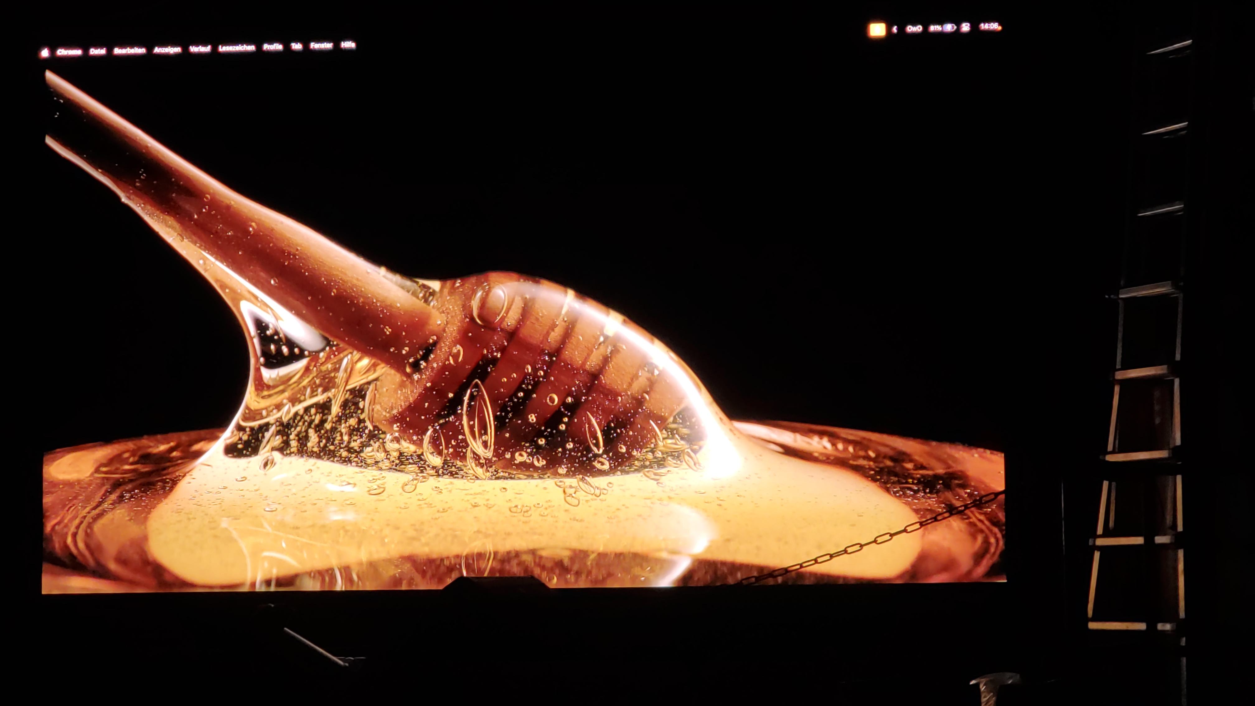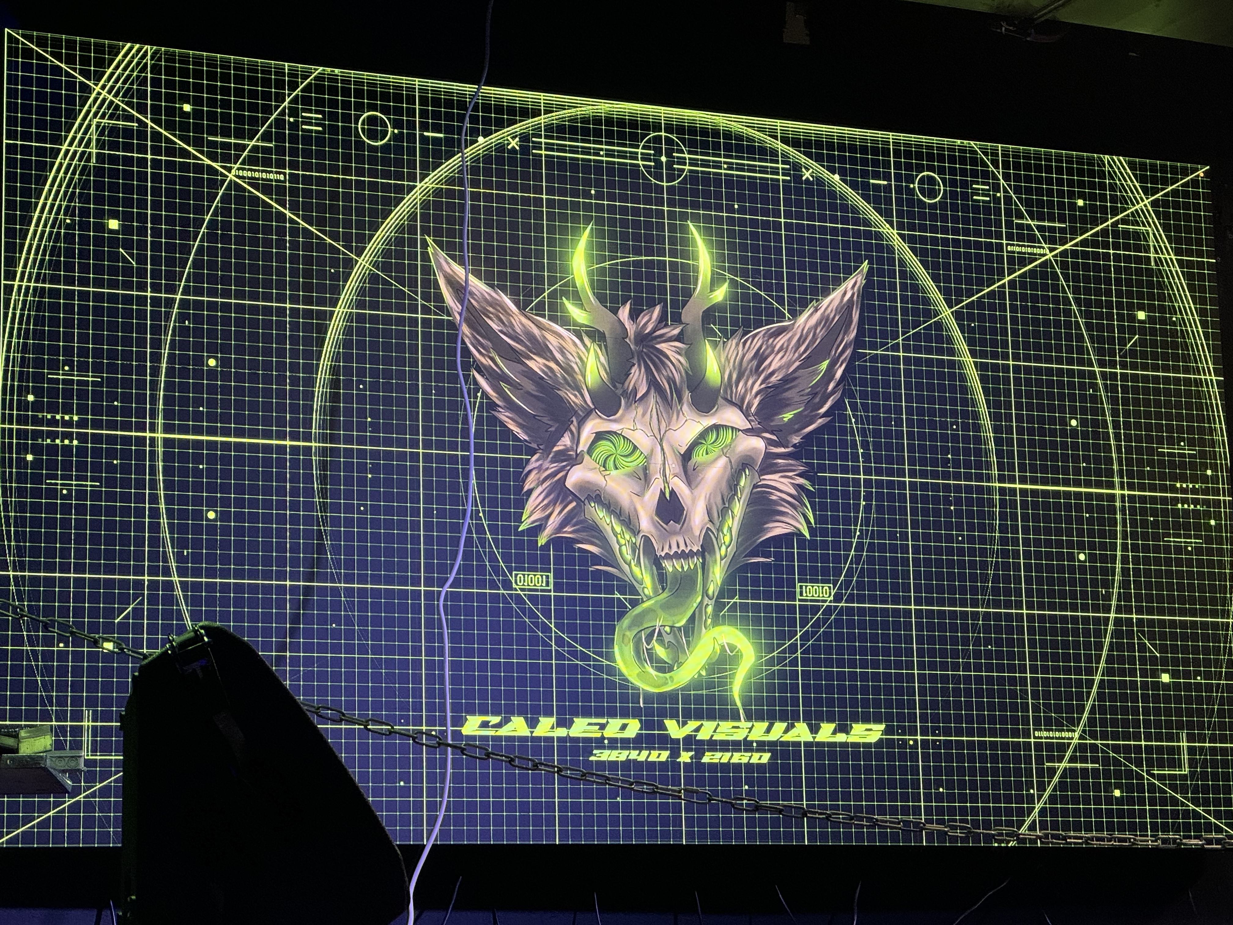 Ultra-hochauflösendes Indoor LED Display mit klappbarer Wandmontage in einem Stuttgarter Club. Das 8,29 m² große Display mit P1.8mm Pixelabstand liefert gestochen scharfe Bilder — ideal für die Bespielung mit Visuals und Eventgrafiken.