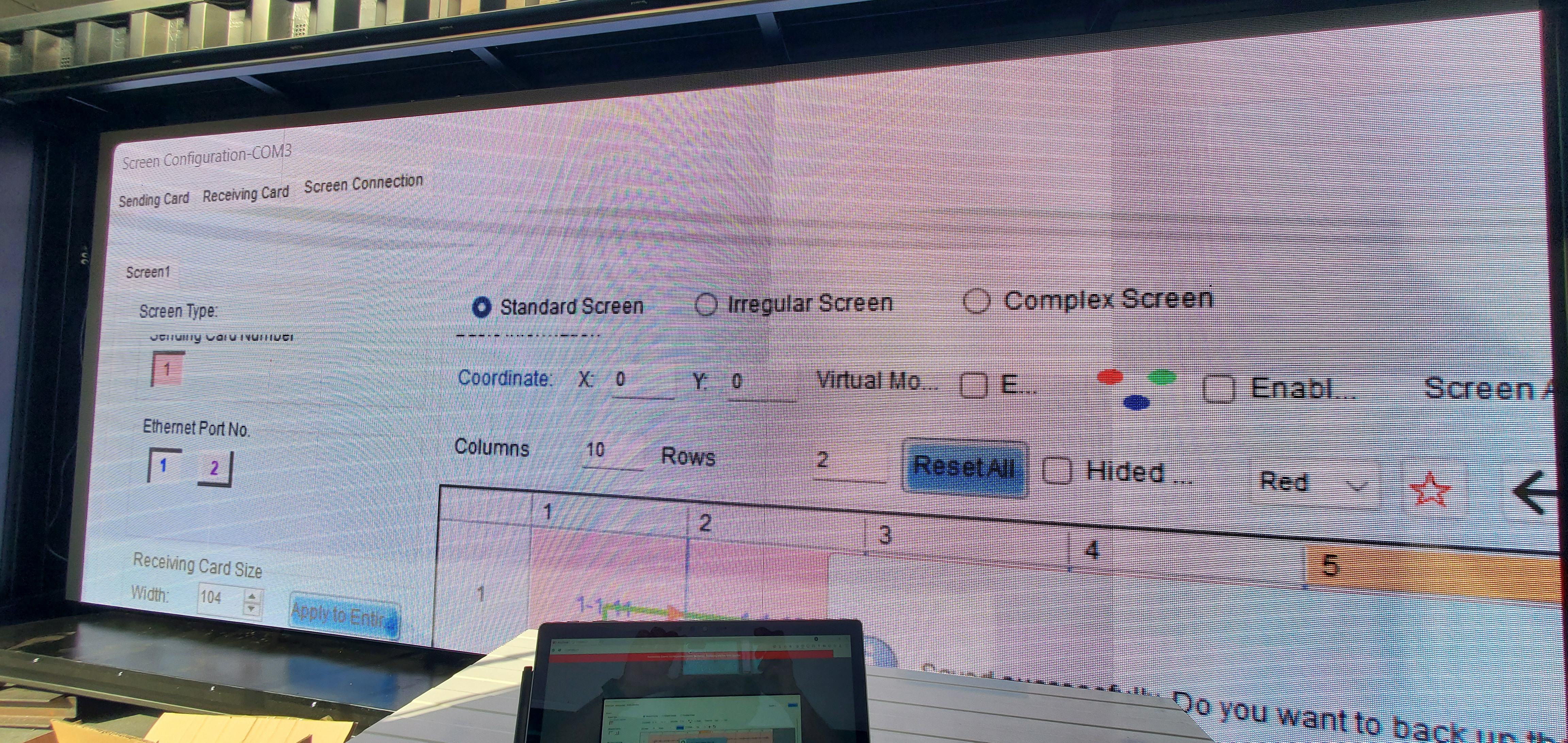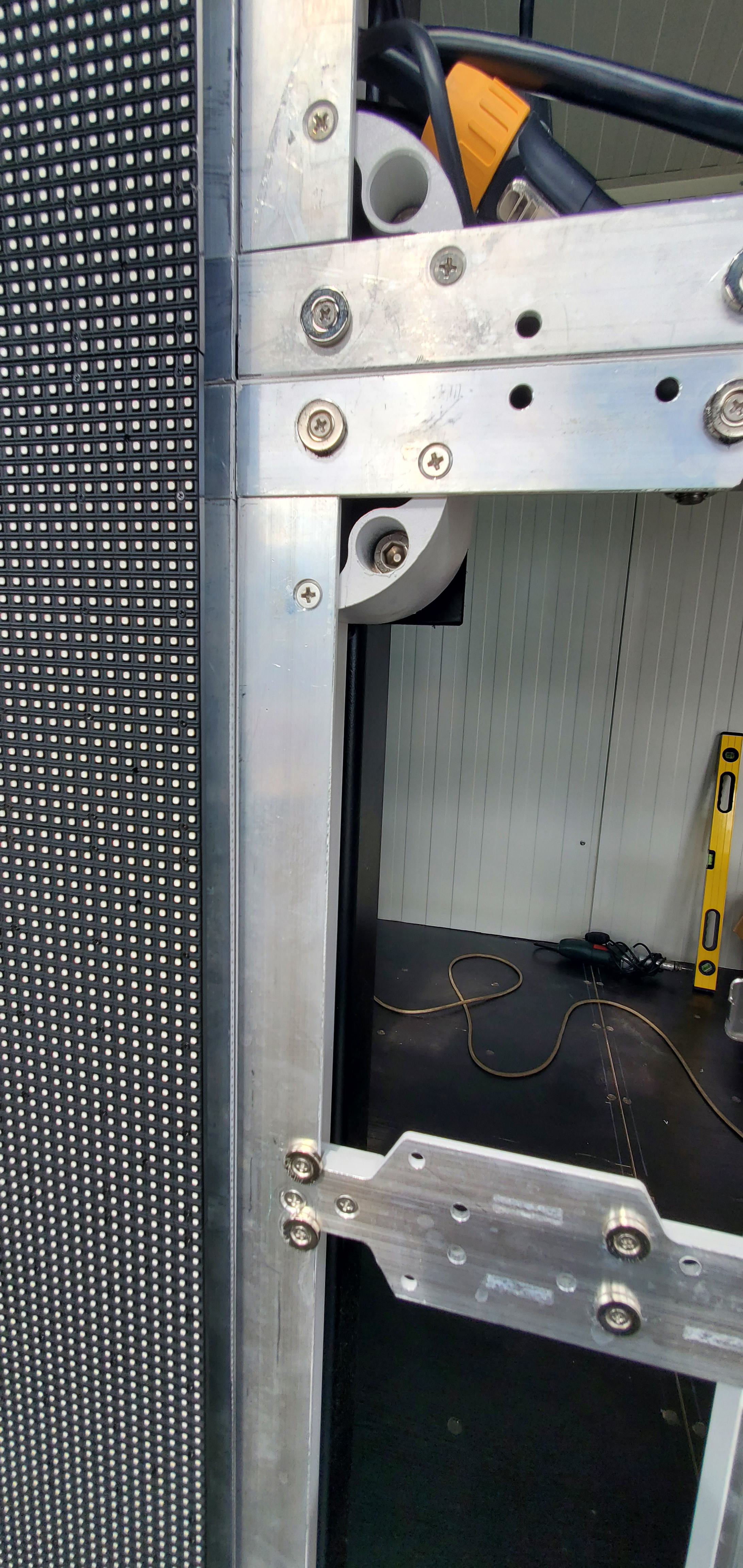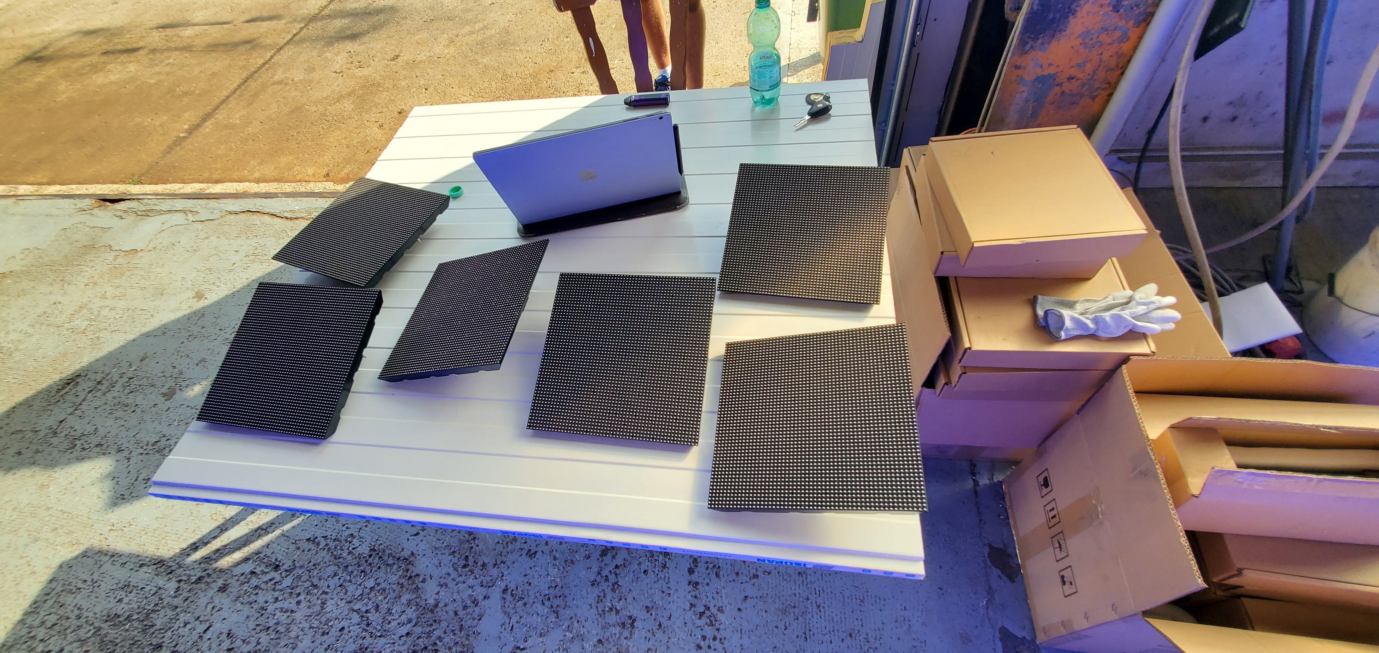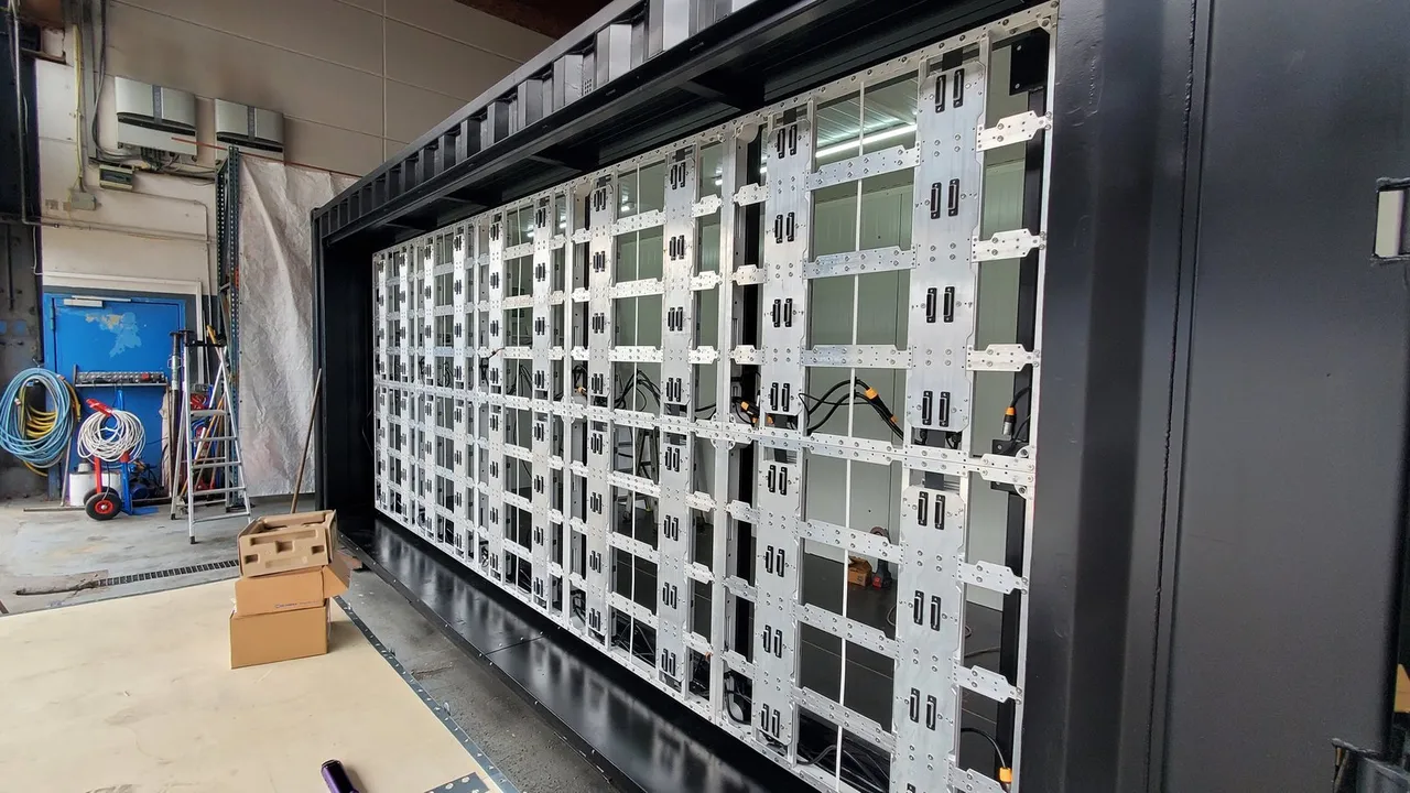 LED Display montiert an einem 20-Fuß-Seecontainer — die mobile Komplettlösung. 5m × 2m (10 m²) Displayfläche mit P4.8 Outdoor-Modulen und 6.500 Nit Helligkeit. Novastar KU20 Videoscaler mit HDMI-Anschluss. Ideal für Public Viewing, temporäre Werbung und mobile Events.