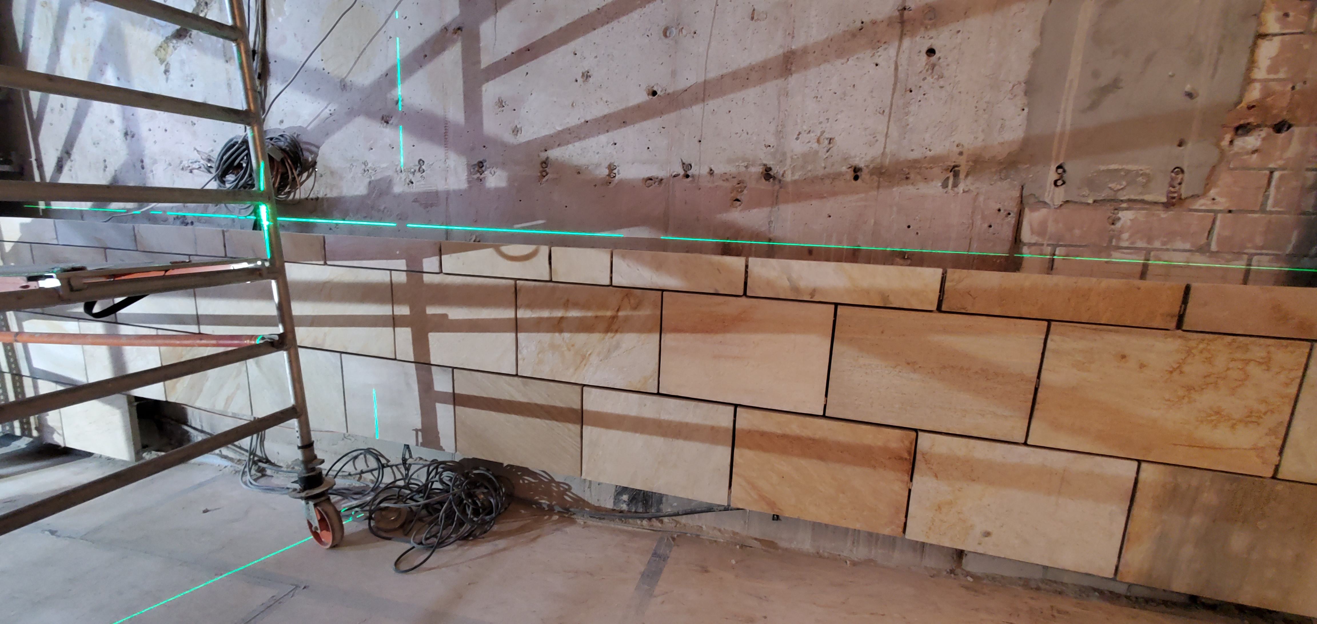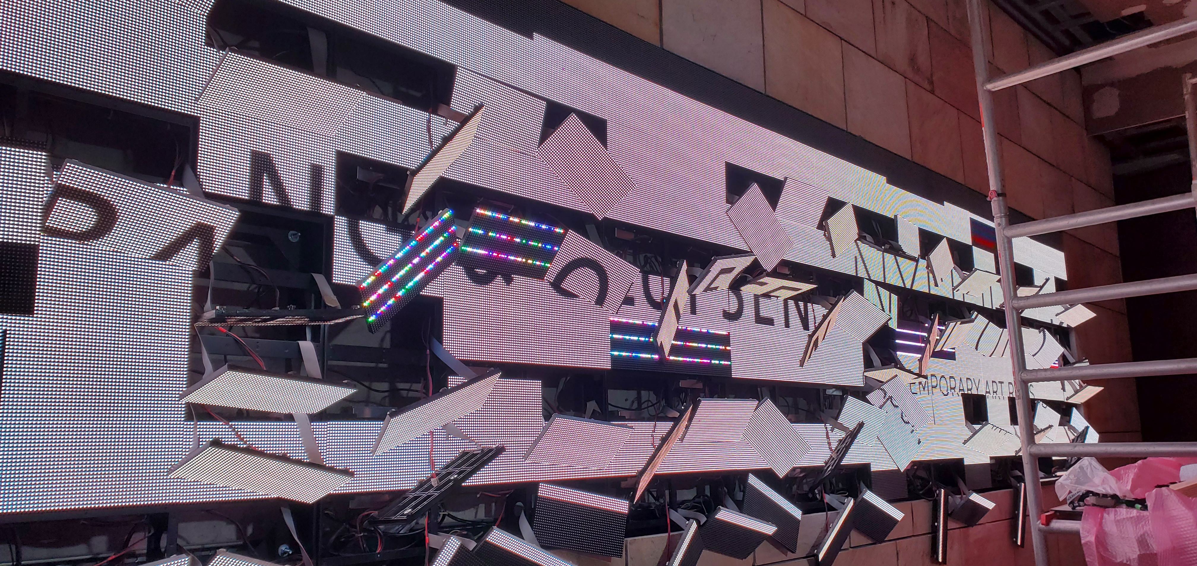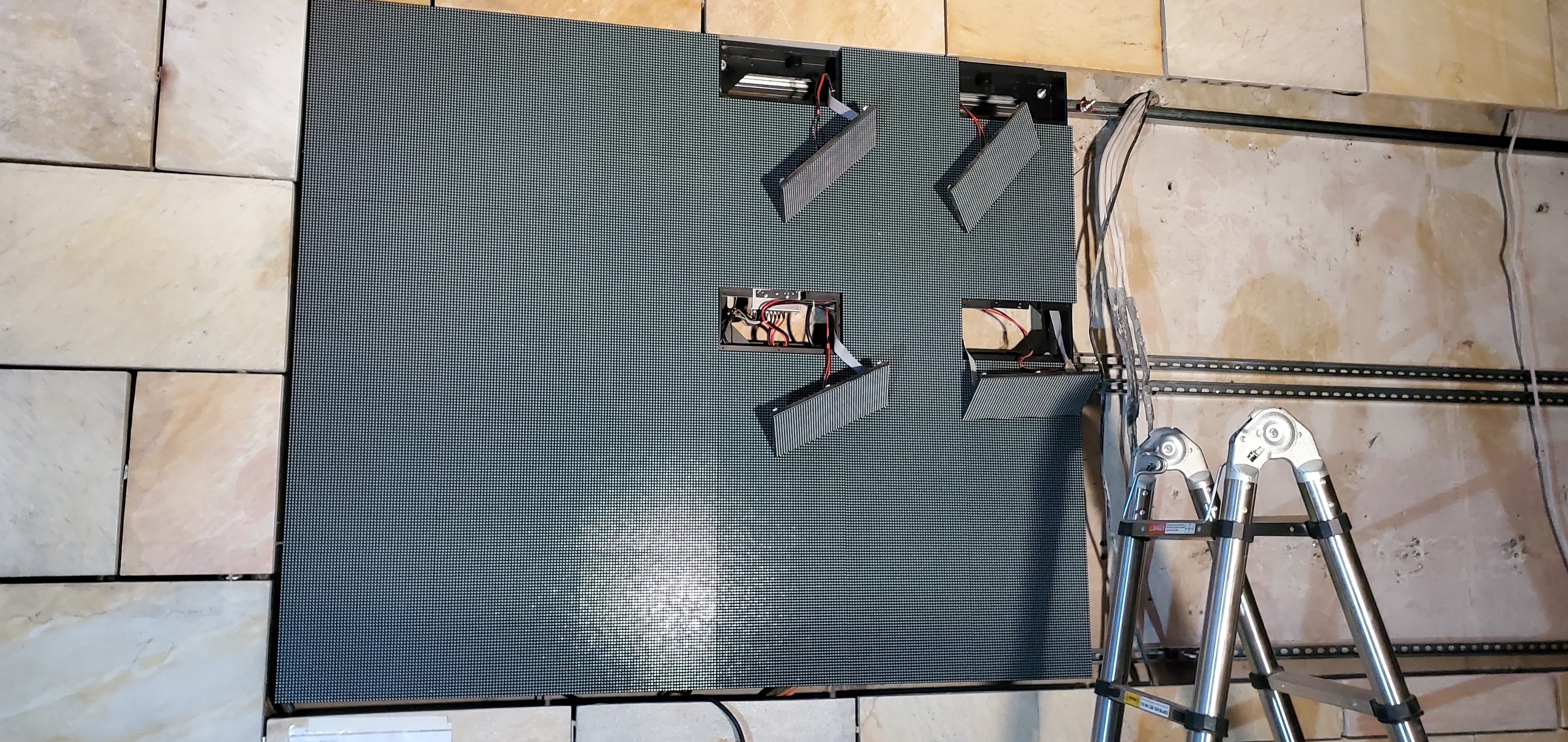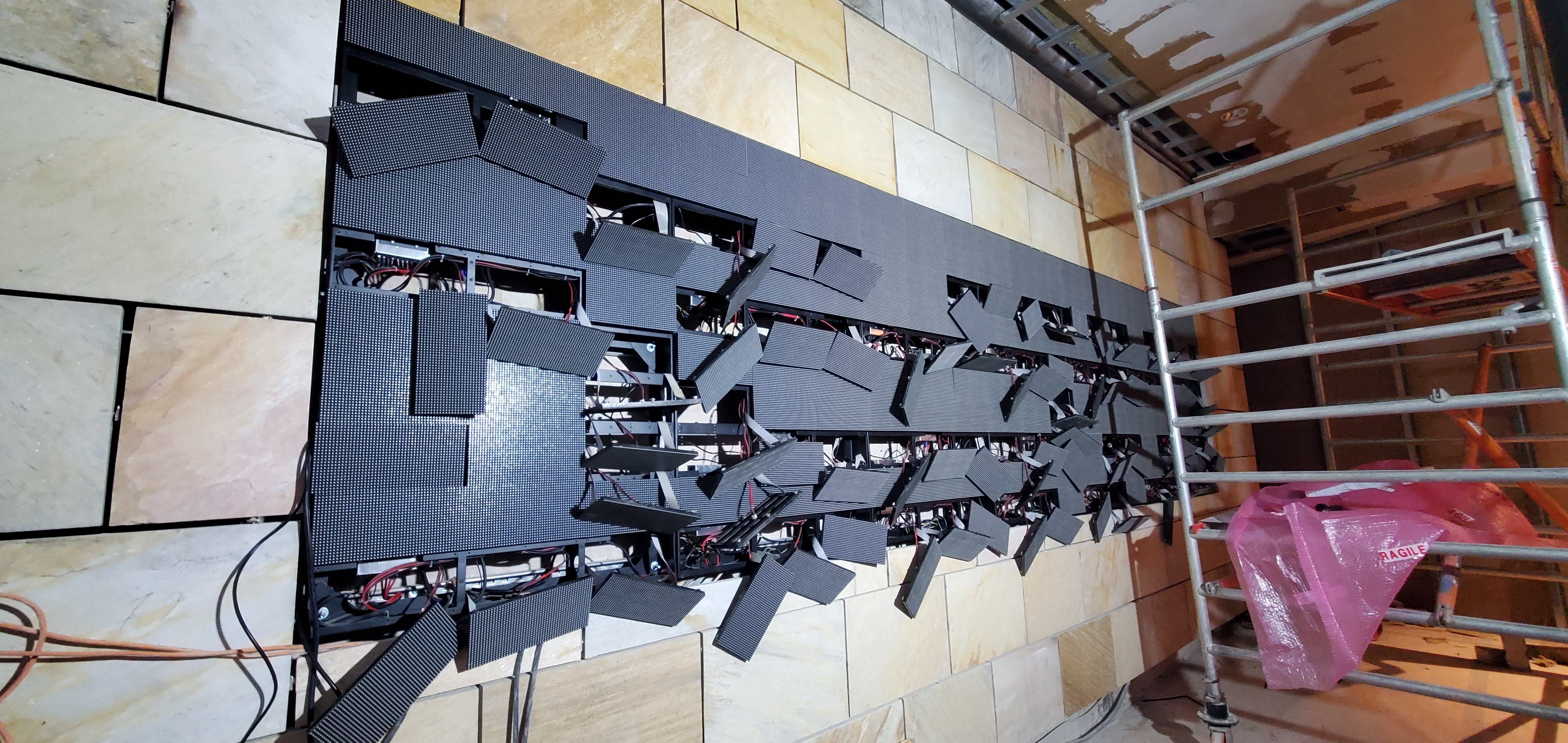 Hochwertiges Indoor LED Display im Eingangsbereich eines Premium-Möbelhauses in Berlin. Das Display dient der Kundenbegrüßung und zeigt emotionale Wohnlandschaften und Produktinspirationen in brillanter Qualität.