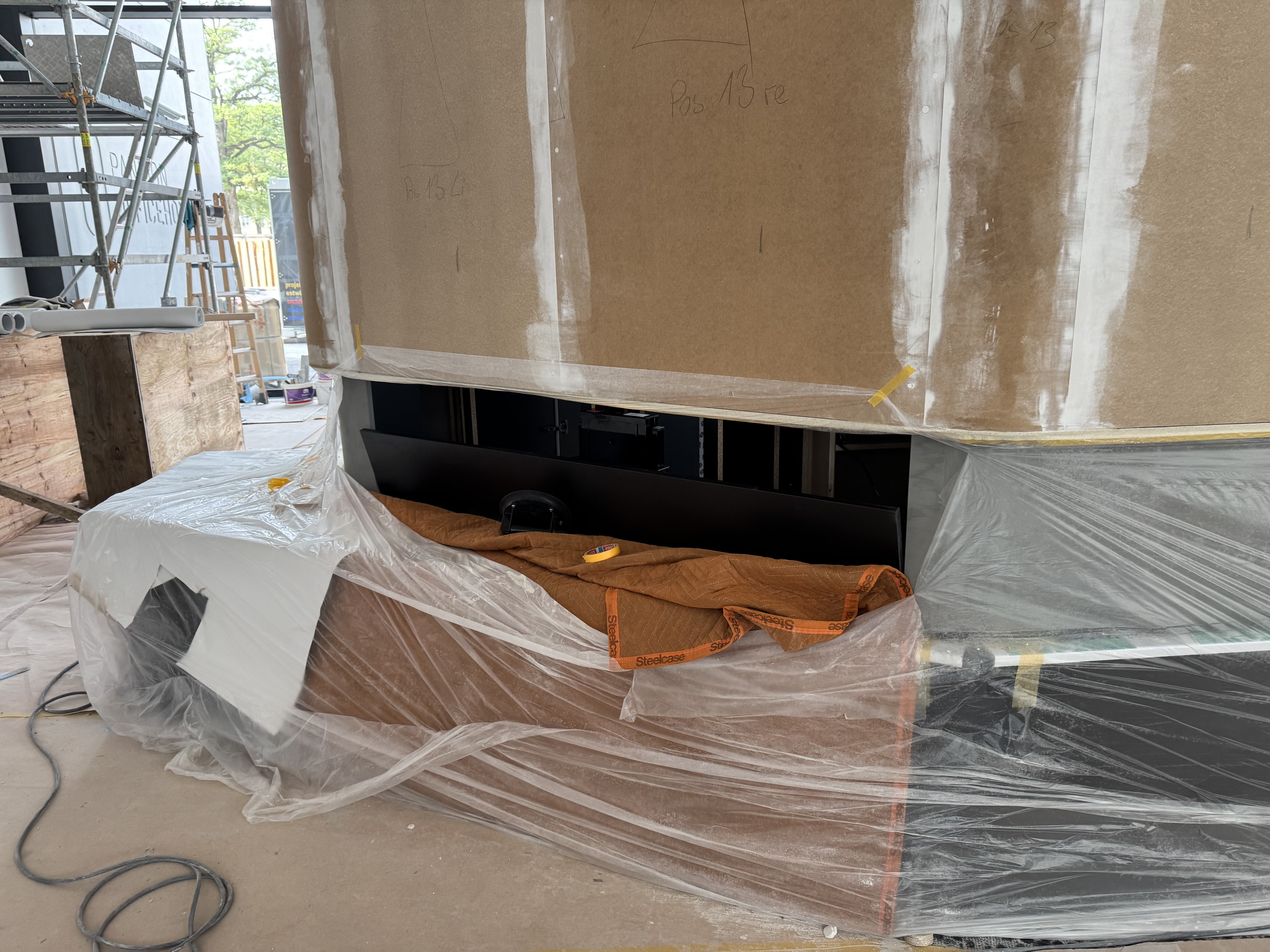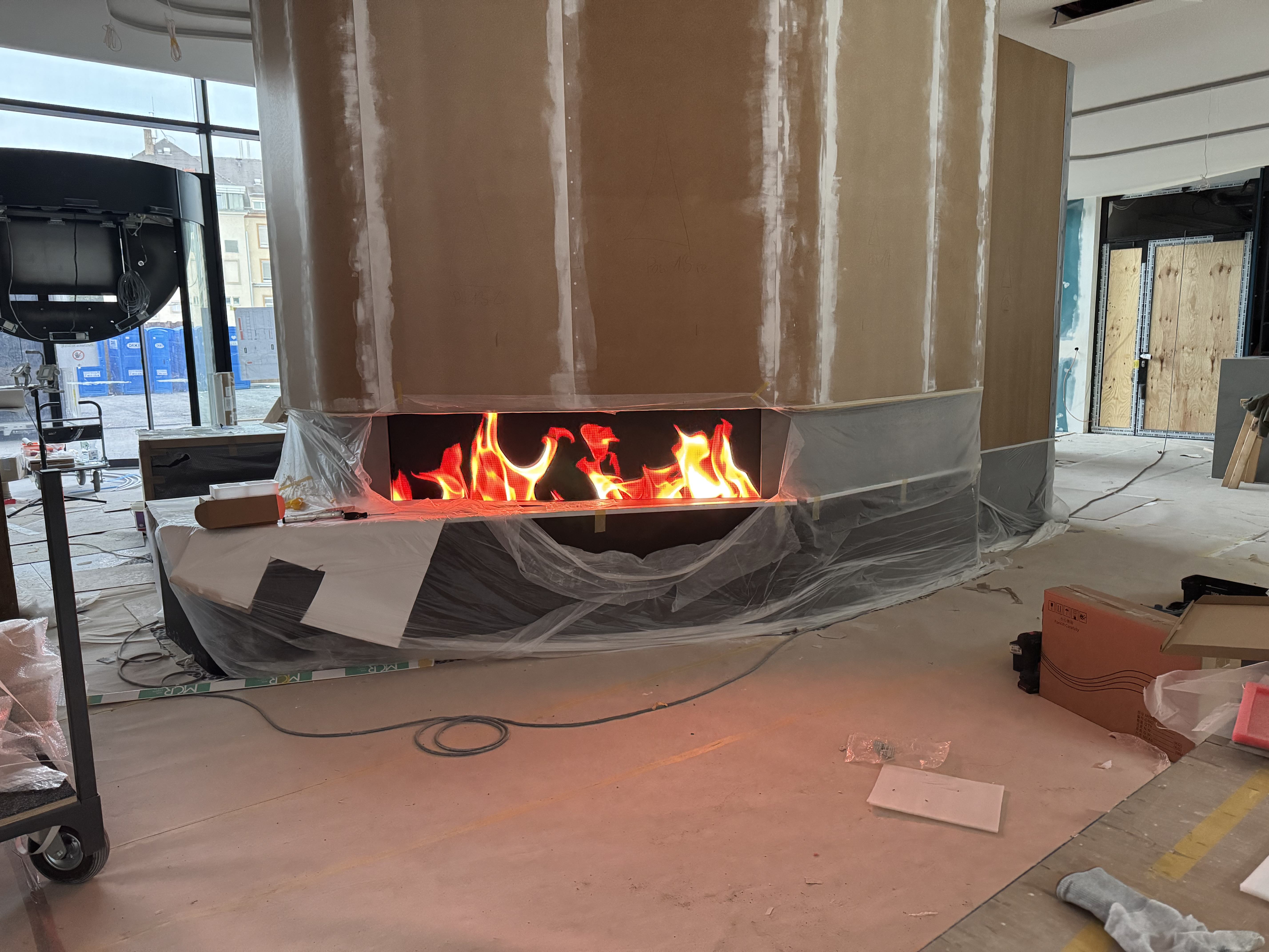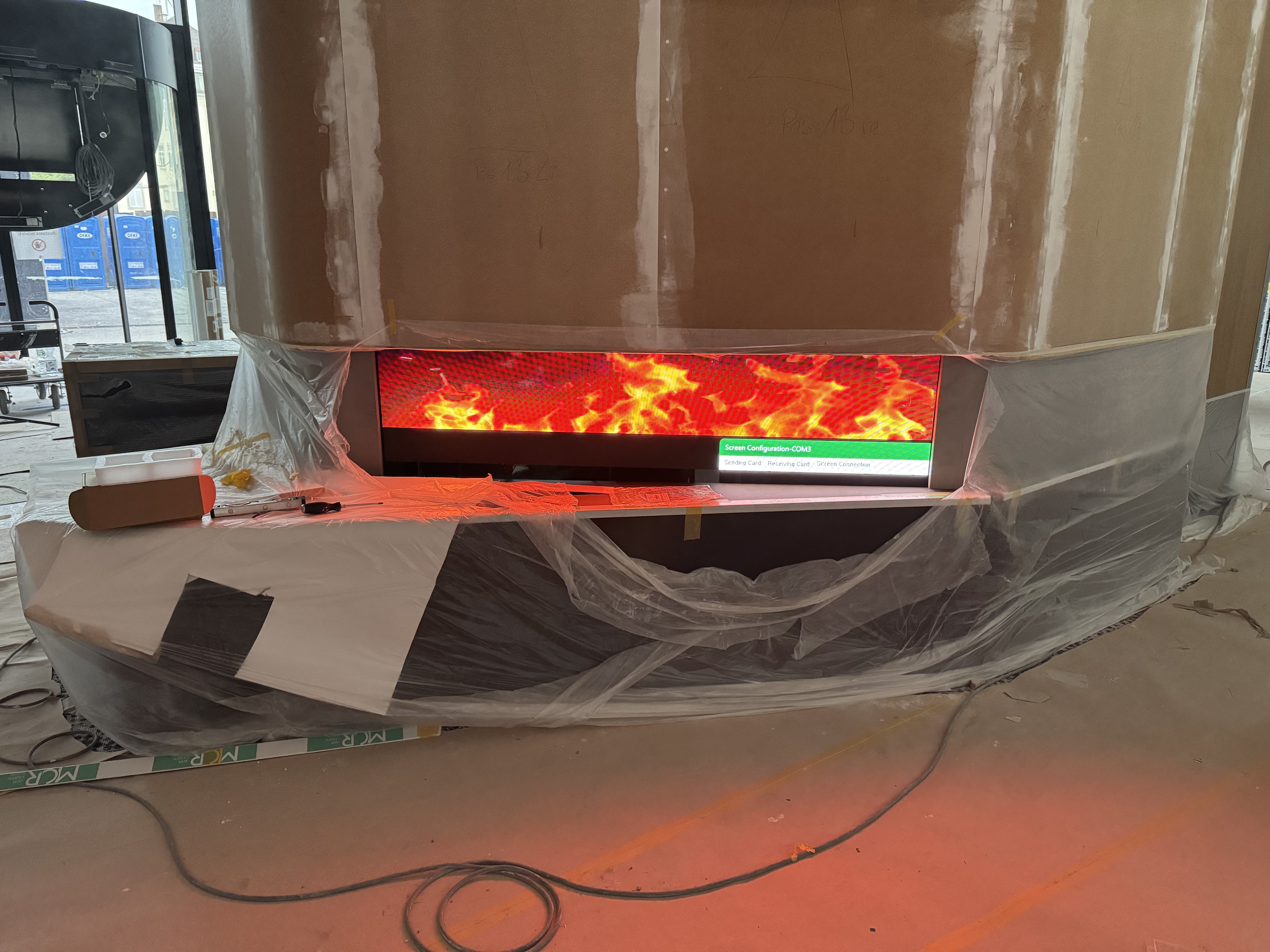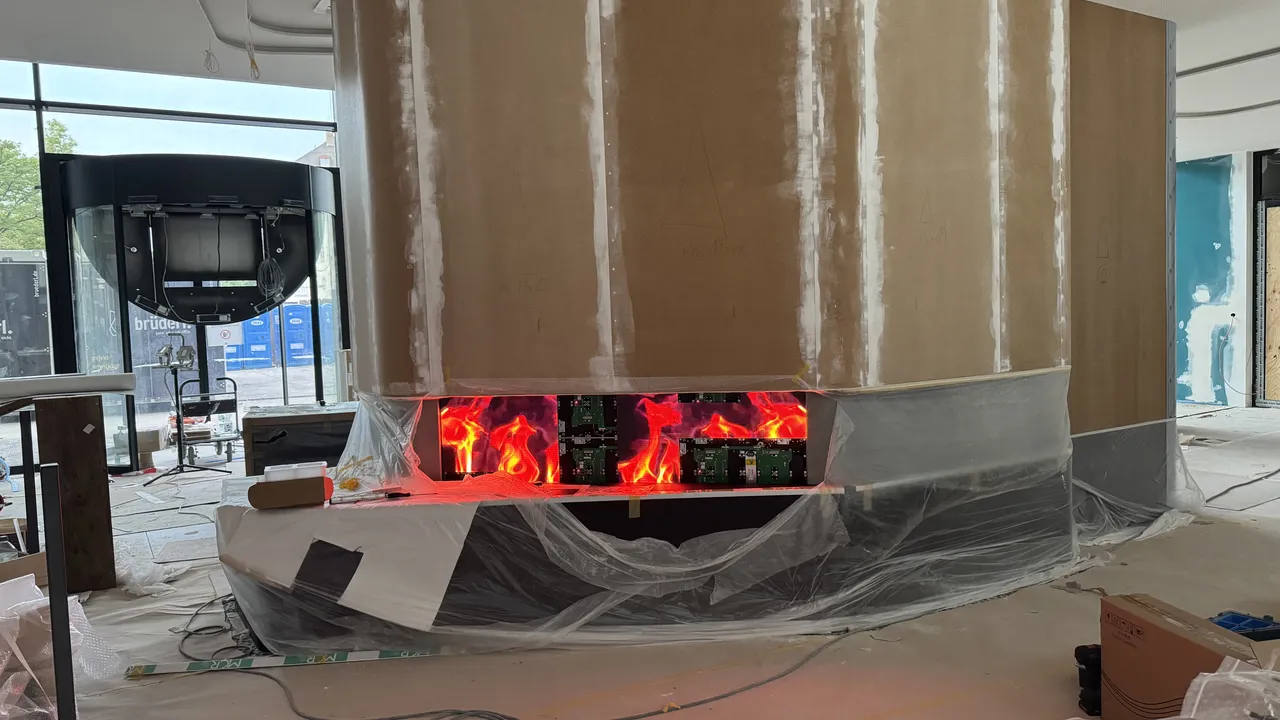 Indoor LED-Wandmontage für das Deutsche Patent- und Markenamt in München. Installiert im neu bezogenen Gebäude zur Simulation eines indoor Lagerfeuers. Die 6 Cabinets mit 1.9mm Pixelabstand erzeugen eine beeindruckende, realistische Atmosphäre.