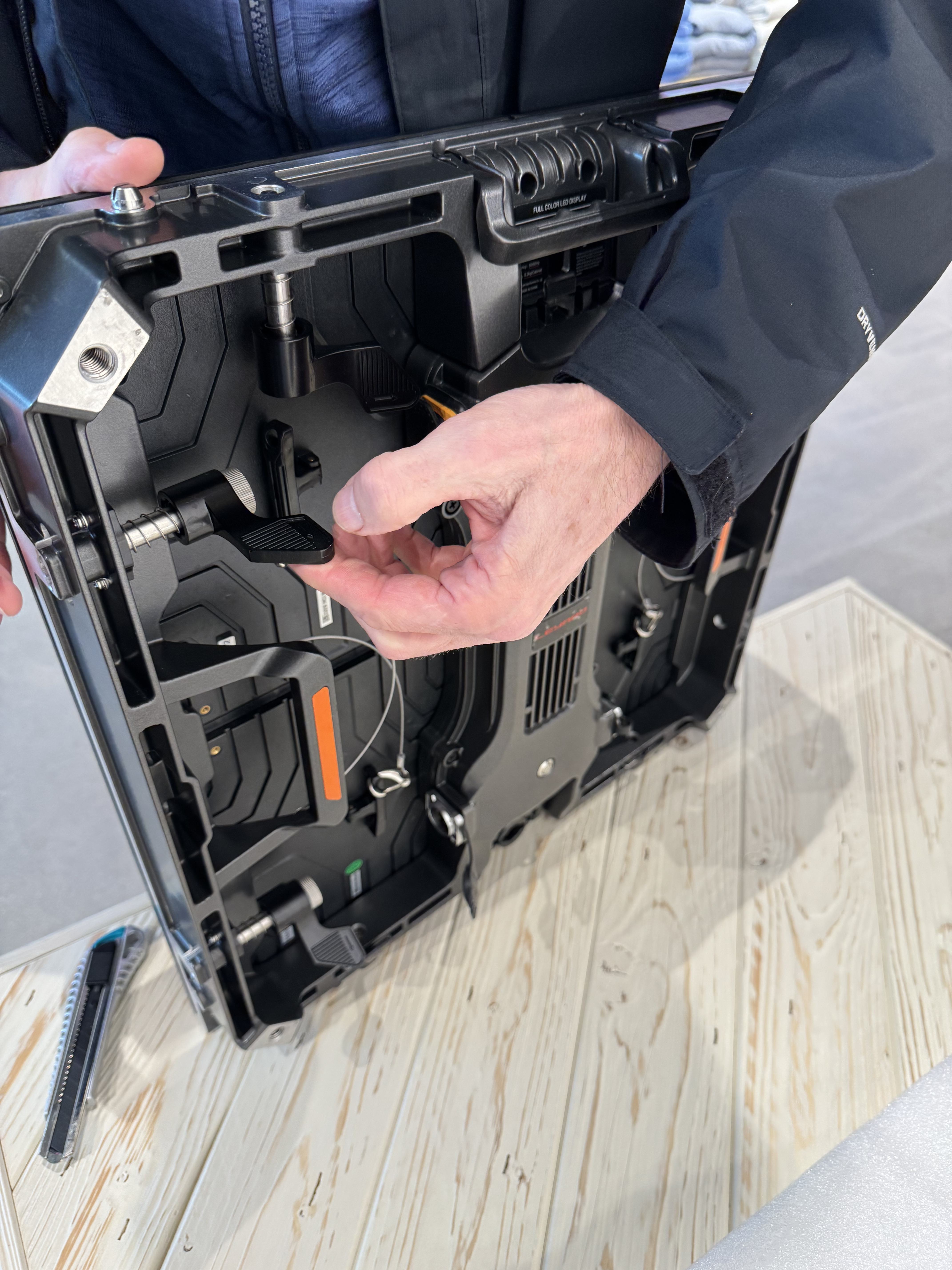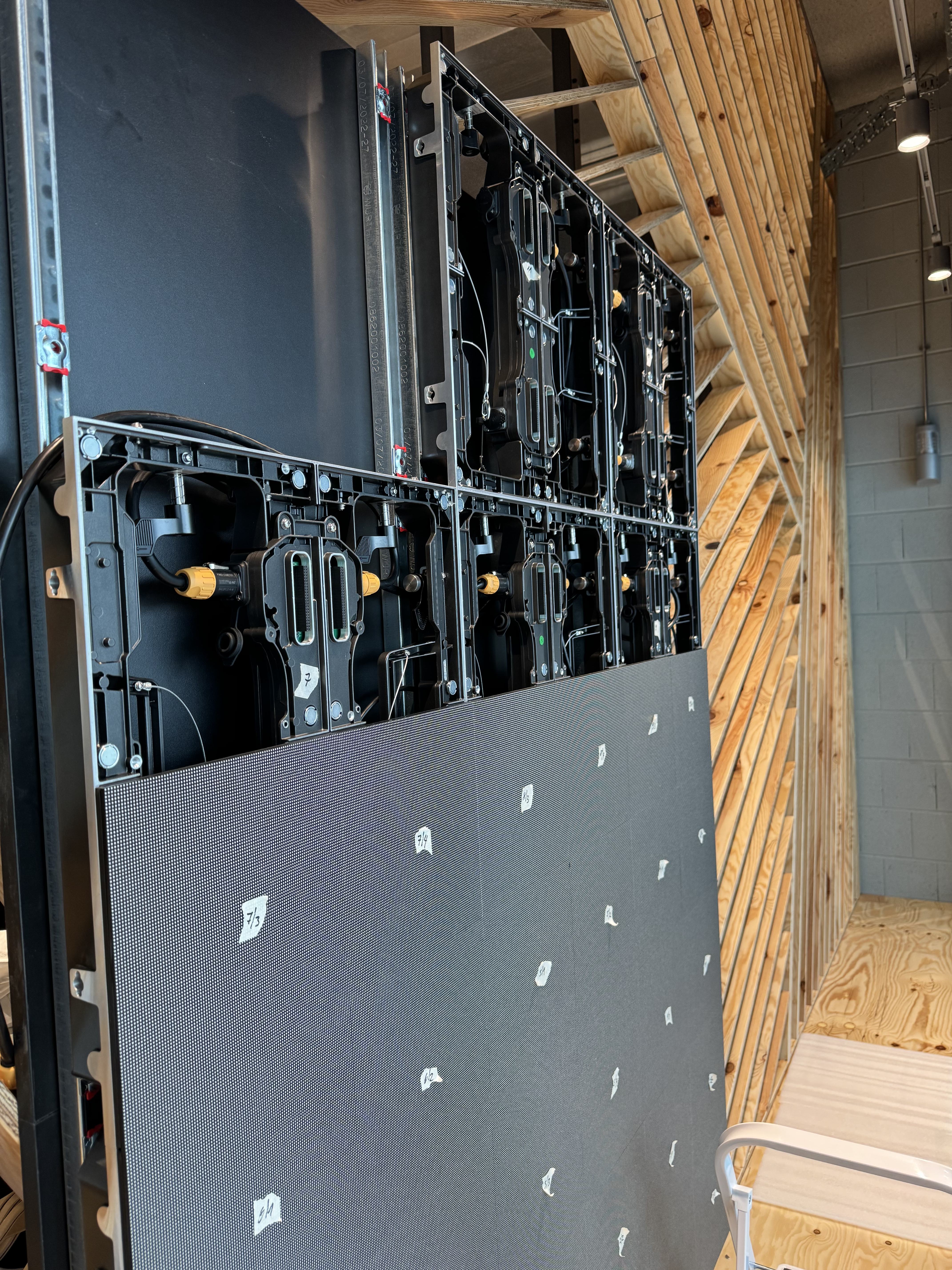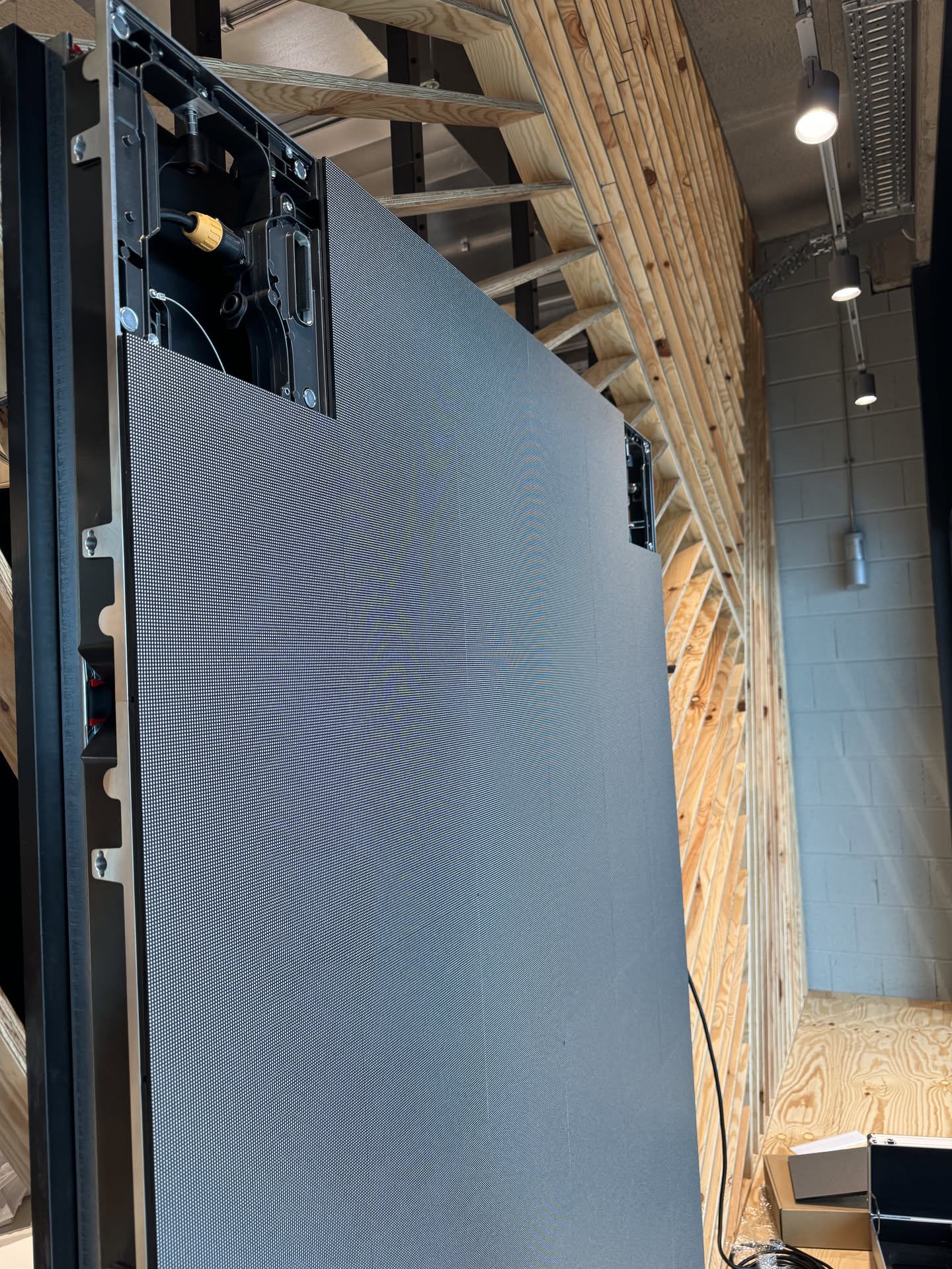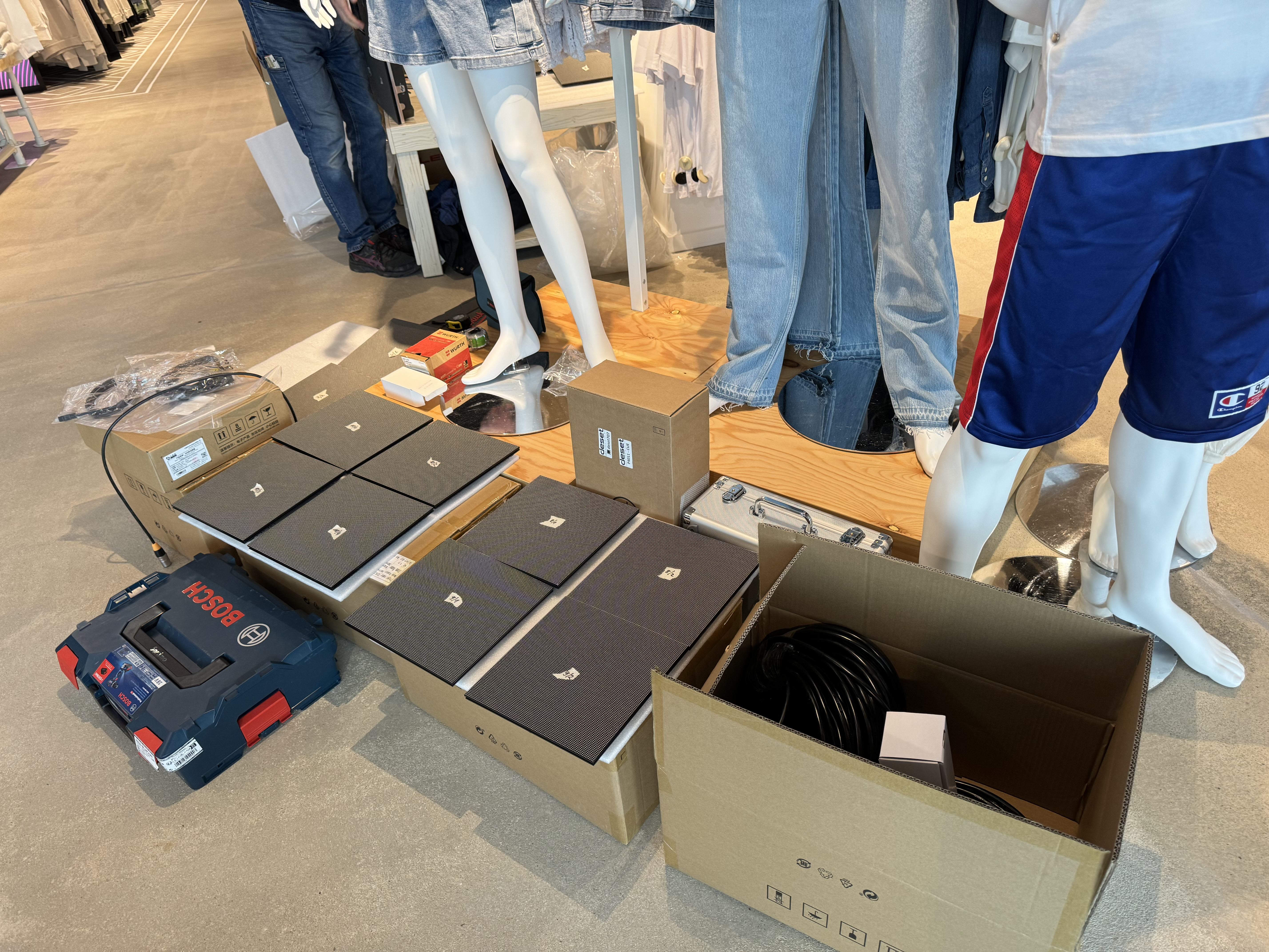 Indoor LED Display als Schaufenster-Lösung. Das P2.5mm Display wurde auf einer Holzplatte montiert und bietet mit 1,5m × 2m (3 m²) eine beeindruckende Werbefläche, die von außen und innen gut sichtbar ist.