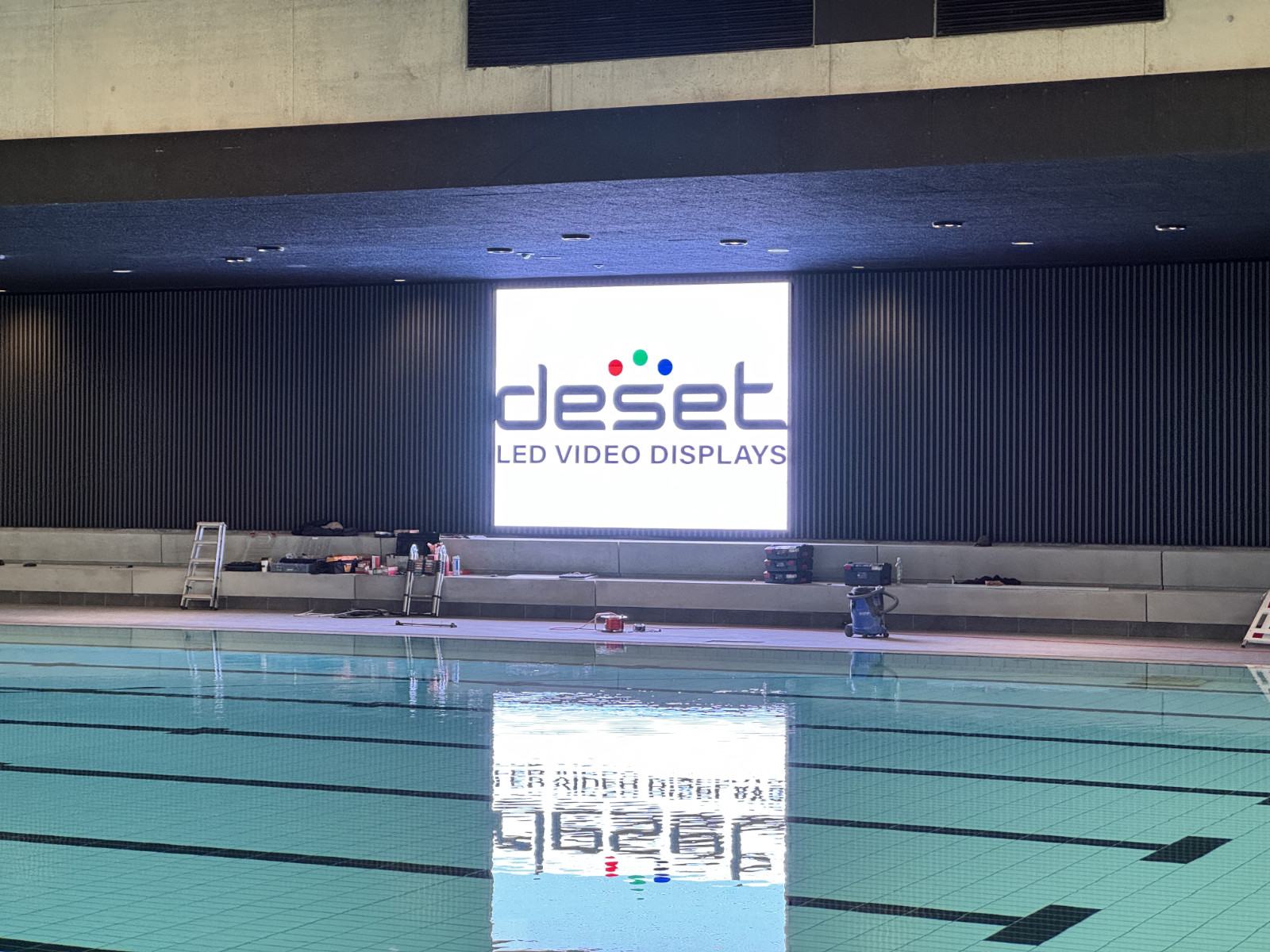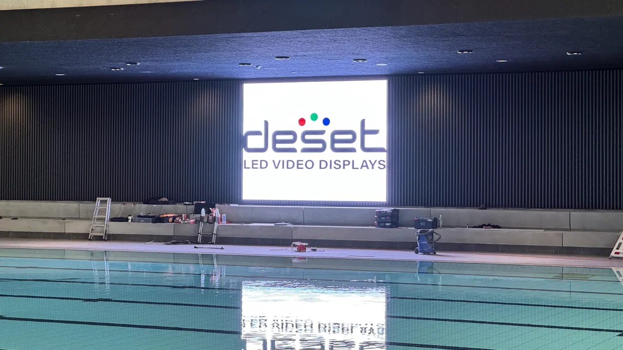 Outdoor LED Display in Wandmontage für die Stadtwerke Aalen. Die erhöhte Position sorgt für maximale Fernwirkung an einer Hauptverkehrsstraße.